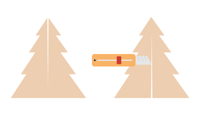 Using scissors, a knife, or a ruler, cut through the cardboard following the tree shape. To get a fine cut, use the tool that is most precise.