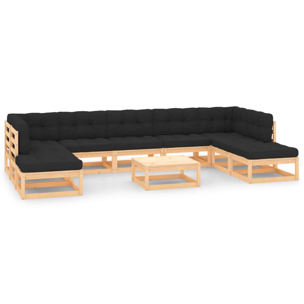 Made of solid pinewood, the pallet lounge set is durable and weather-resistant. This outdoor sofa set has a solid construction and requires little maintenance. Combined with thickly padded cushions, the sofa set provides the utmost comfort. Additionally, the modular design also makes it possible to place the set in any arrangement as per your taste.