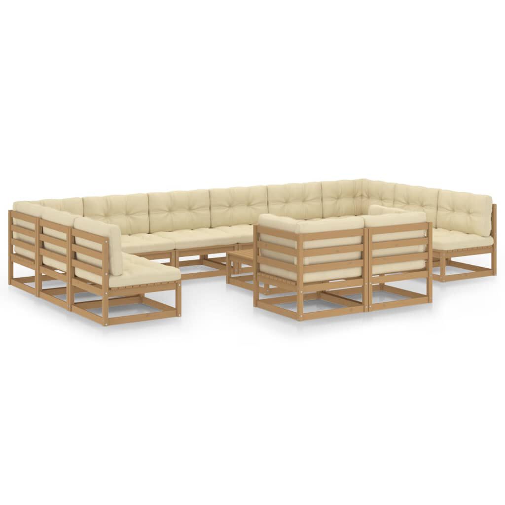 The sofa set is made of solid pinewood, making it sturdy and stable. This set has a solid construction and requires little maintenance. The cushions add extra comfort. This lounge set will add a touch of rustic charm to your outdoor living space.