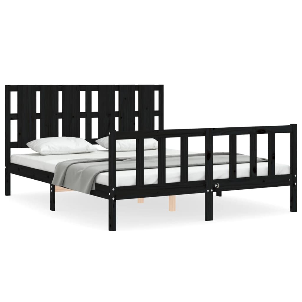 vidaXL Bed Frame without Mattress Black King Size Solid Wood Pine