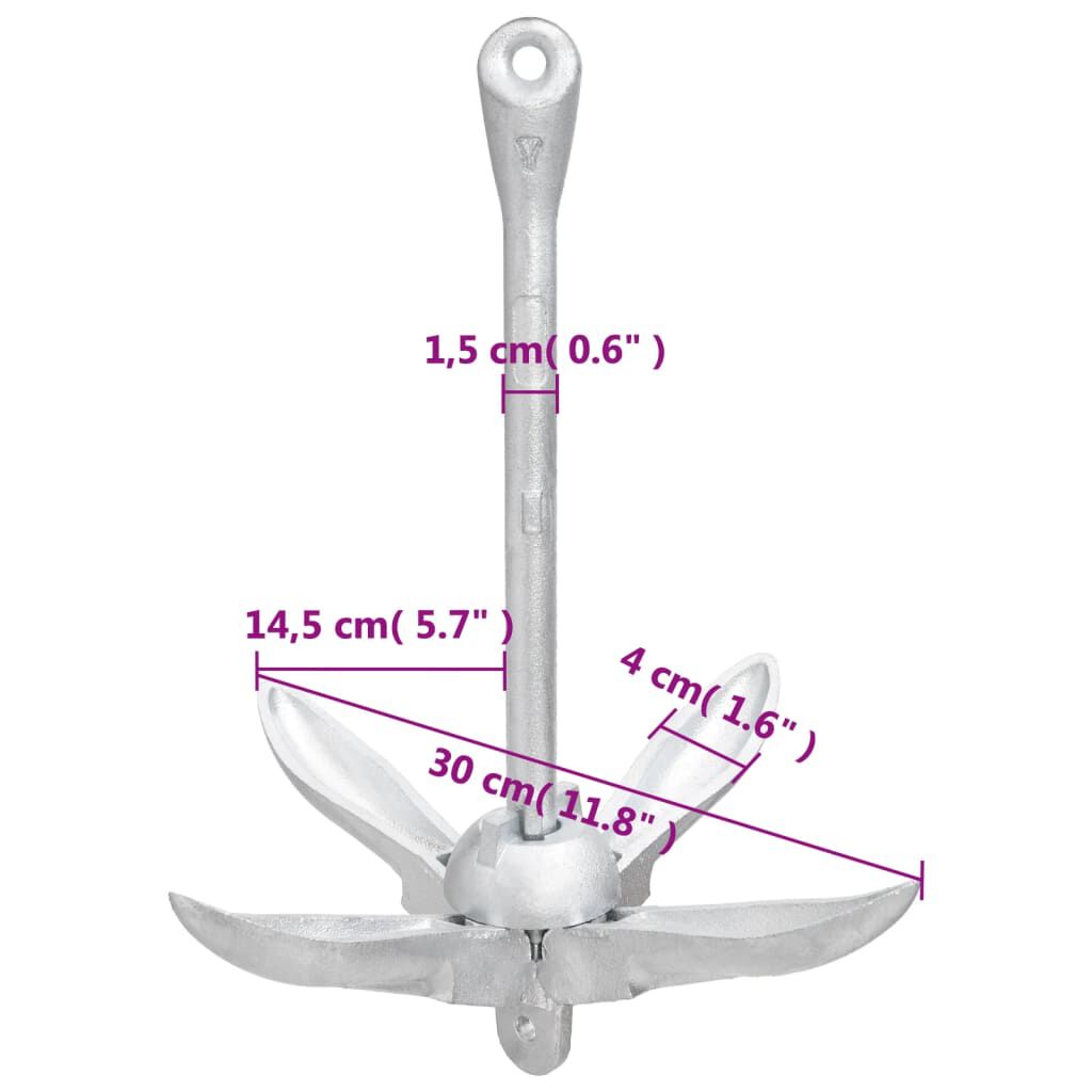 vidaXL Folding Anchor with Rope Silver 1.5 kg Malleable Iron