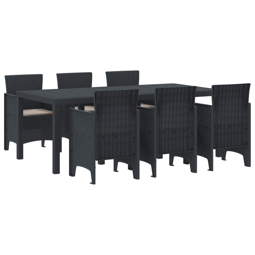 This modern garden dining set is here to bring elegance and practicality to your outdoors. With its sleek design and clean lines, it fits perfectly into any modern garden or terrace. It's a great spot for alfresco dining, letting you enjoy meals with family and friends under the stars. This stylish set can turn any outdoor area into a classy dining place, creating the perfect backdrop for memorable gatherings.