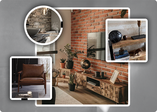 The industrial style colour palette is defined by muted tones and raw finishes. Shades of grey, black, and brown, along with metallic accents, create a rough and modern feel.