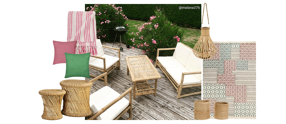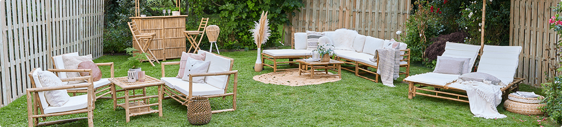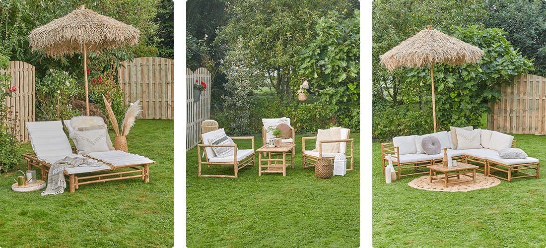 Set up a calm, comfy spot outdoors with natural bamboo pieces