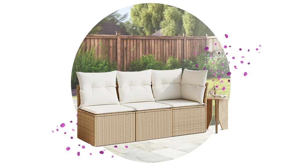 Our rattan garden furniture is made of woven PE rattan, a very durable material that’s easy to clean. Being also stain-resistant, you only need to wash it with a low-pressure hose. Dust it occasionally or wipe it with a damp cloth to keep it looking like new.